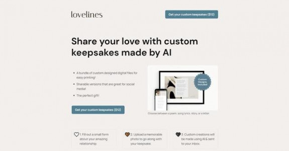 Lovelines is an AI-powered tool that creates custom-designed digital files for printing personalized...