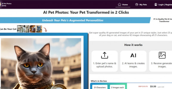 AI Pet Photos is an exciting tool that uses AI technology to transform your cat's or dog's photos in...