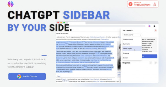 ChatGPT works alongside you on any webpage with the ChatGPT sidebar. Whether you are reading or writ...