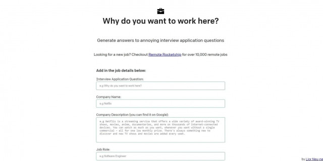 Why Do You Want to Work Here? is a tool that generates sample answers to common interview questions...