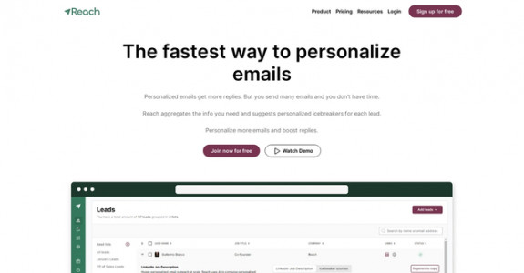 Reach is an outreach personalization and sales enablement tool that generates hyper personalized ice...